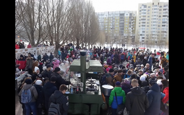 Масленичные гуляния растянулись надолго, но скучно никому не было – ни детворе, ни пожилым. Организаторы праздника угощали всех желающих традиционными сладкими блинами, горячим чаем с дымком и знаменитой армейской гречневой кашей, приготовленной на полевой кухне "РОДИНЫ".